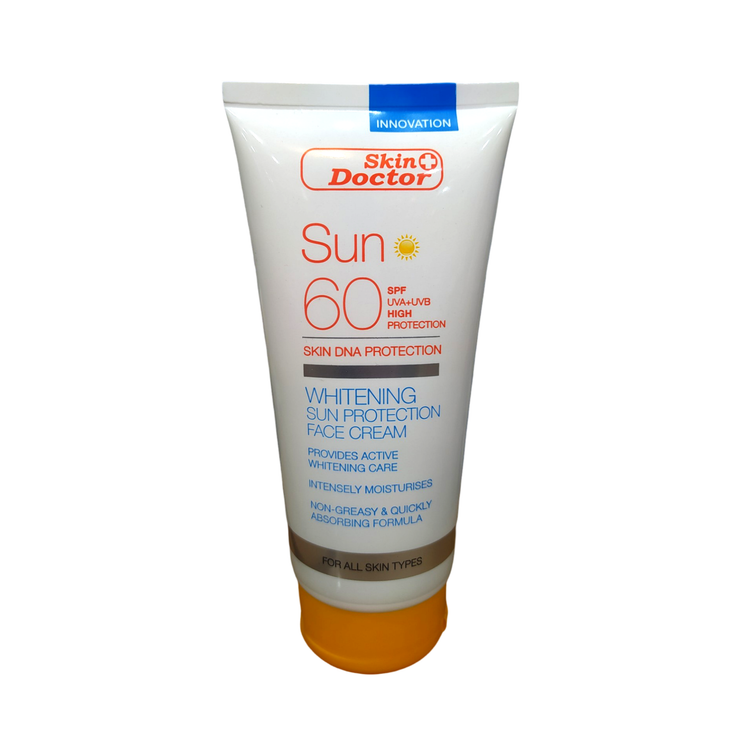 کرم ضدآفتاب سفید کننده دکتر اسکین ۶۰ اس پی اف ،ویژگی محصول :صورت برای محافظت در برابر آفتاب و سفید کننده پوست برای حفظ آن و جلوگیری از رنگدانه، مرطوب کننده پوست و تغذیه عمیق پوست مناسب برای انواع پوست. محصولی نو آورانه حاوی مخافظ در برابر آفتاب با مراقبت روشن کننده شدید هست فرمول غیر چسبنده با کمپلکس روشن کننده فعال از پوست در برابر اشعه مخافظت می کند .